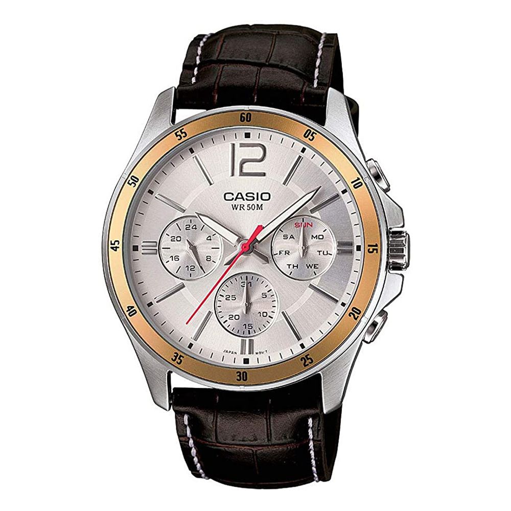 Casio Enticer Chronograph White Dial Men's Watch, Leather Strap, MTP-1374L-7AVDF