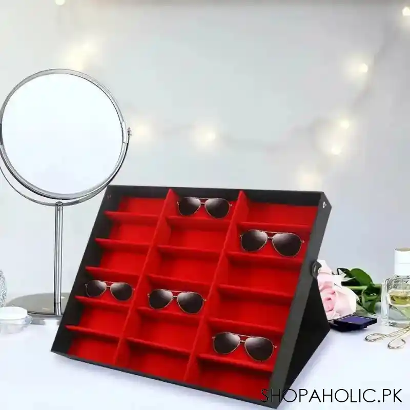 18 Grid Sunglasses Organizer, Eyeglasses Storage Display Box, Glasses Display Stand Storage Box Case Tray, Eye Wear Display Stand, Foldable Glasses Display Case, Glasses Jewelry Organizer