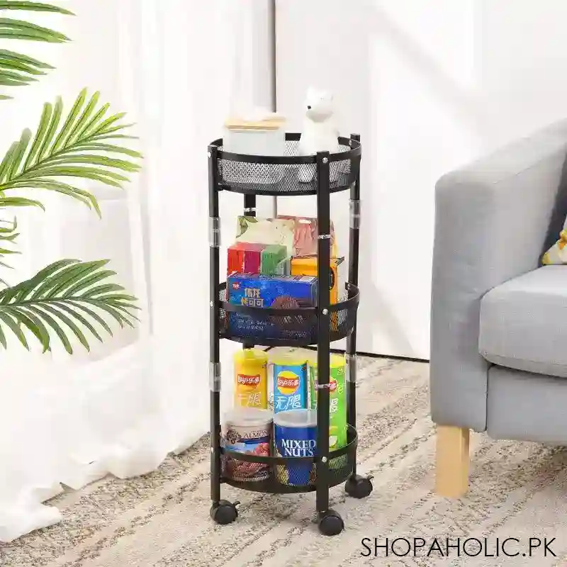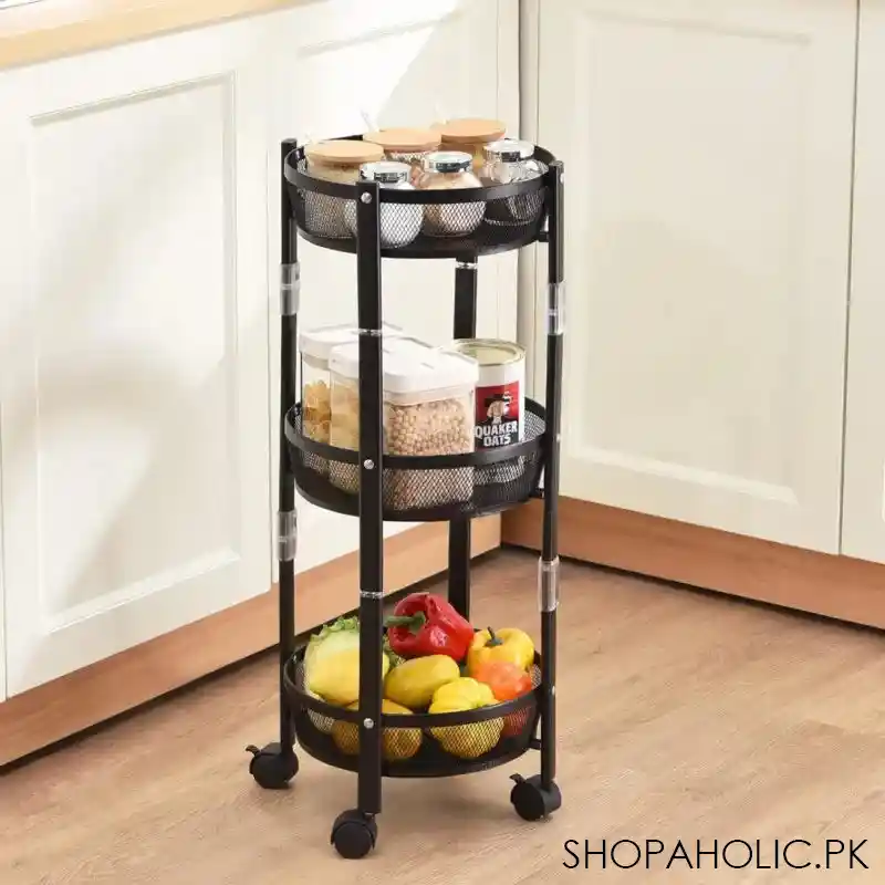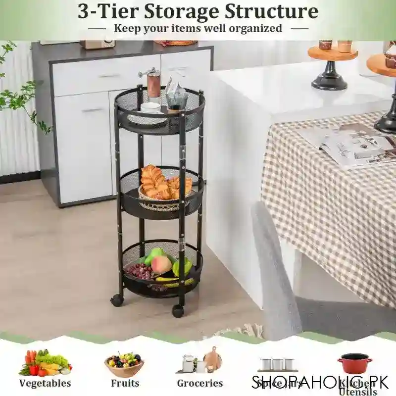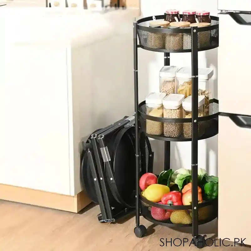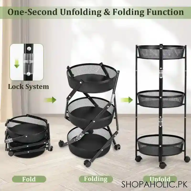 3 Folding Storage Cart, Flexible Food Trolley, Home Snack Vegetables Storage Rack with Wheels, Multifunctional 3 Tier Storage Cart