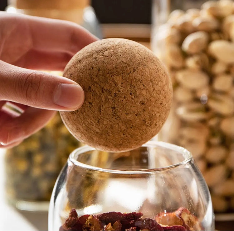 3Pcs Glass Food Storage Bottle, Round Cork Stopper Glass Pot, Coffee Beans Storage Bottle