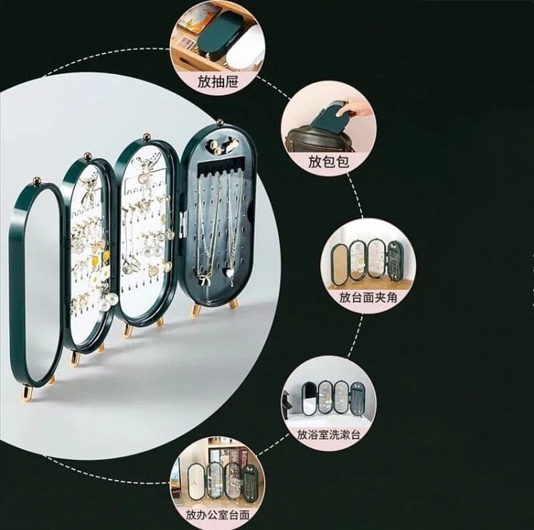 4 Doors Portable Jewelry Organizer With Mirror, Earrings Display Jewelry Rack, Hanging Earrings Holder