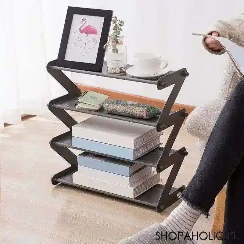 4 Layers Zigzag Shoe Rack Standing Organizer for Books Sundries Bedroom Living Room