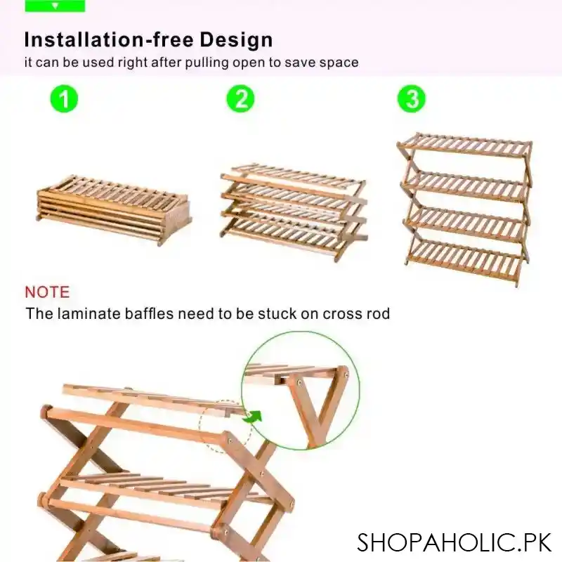 Introducing our 4-tier plant stand shelf and folding bamboo shoe rack. Made of high-quality bamboo, this product is eco-friendly and easy to assemble in minutes without any tools required. Its stable design ensures it can hold your plants, flower pots, or shoes without wobbling or tipping over. Perfect for saving space and adding a touch of style to your home.