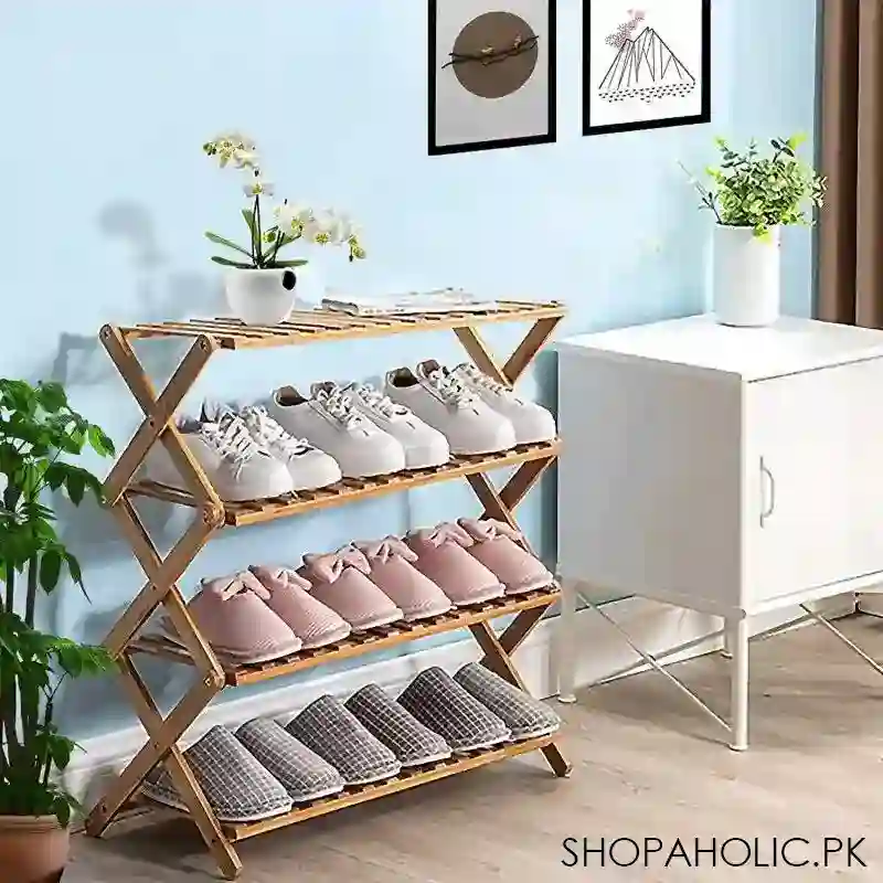 In conclusion, if you're looking for a stylish and practical way to display your plants or store your shoes and other household items, our 4-tier plant stand shelf and folding bamboo shoe rack is the perfect choice. Its eco-friendly, easy to assemble and disassemble, and built to last, making it a great investment for your home.