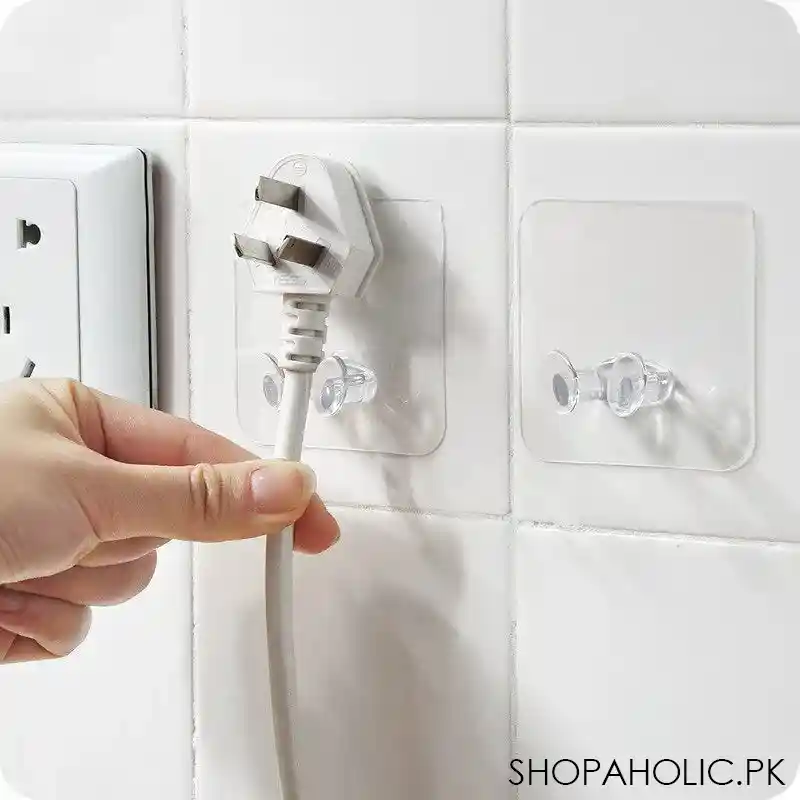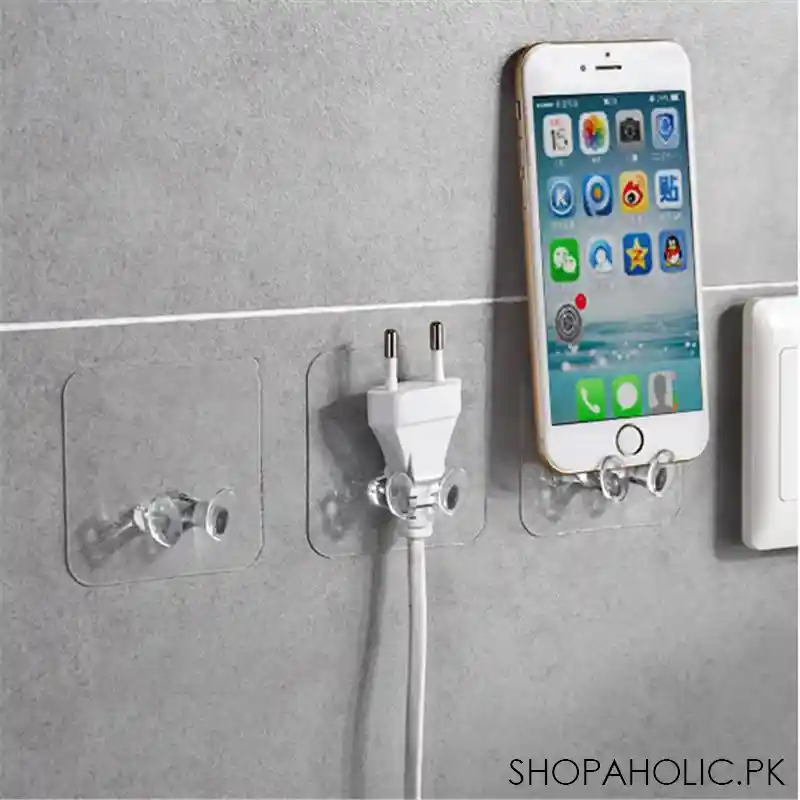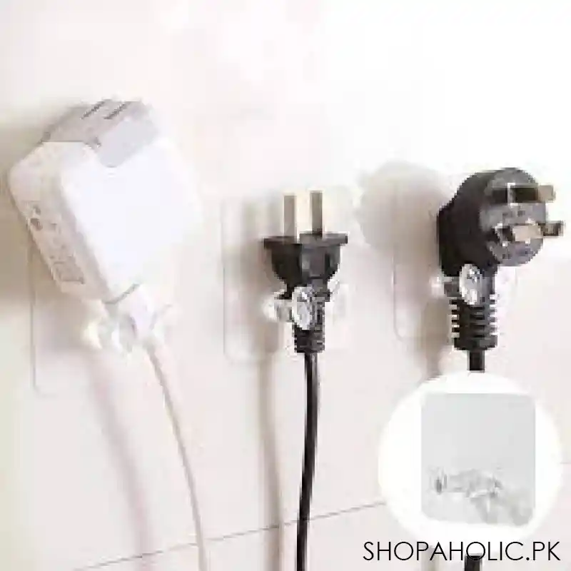 - Package Includes: 1x 5pcs transparent self-adhesive multi-use strong wall hooks for power plugs, home, office, and kitchen