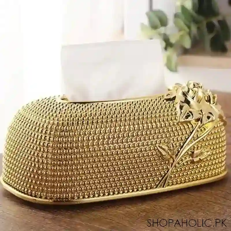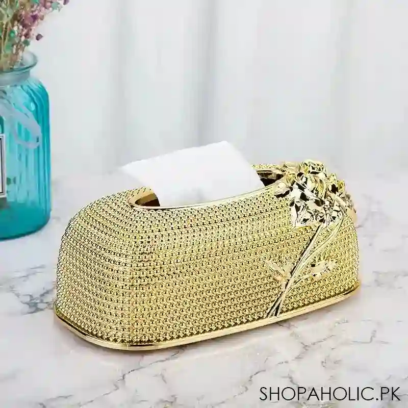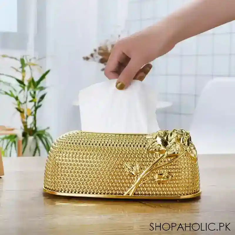 Acrylic Rose Tissue Box, Luxury Napkin Box, Flower Pattern Facial Tissue Box, Desktop Napkin Storage Box, Gold Luxurious Bling Tissue Holder, Napkin Container for Bedroom And Dining Room