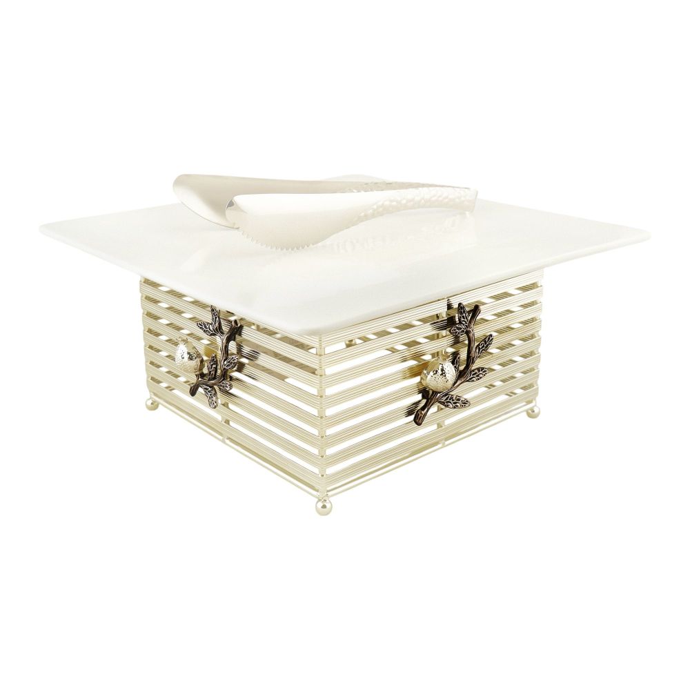 Alpen Berg Square Buffet Serving Dish with Lid & Tong, Orchid Silver, WB1212