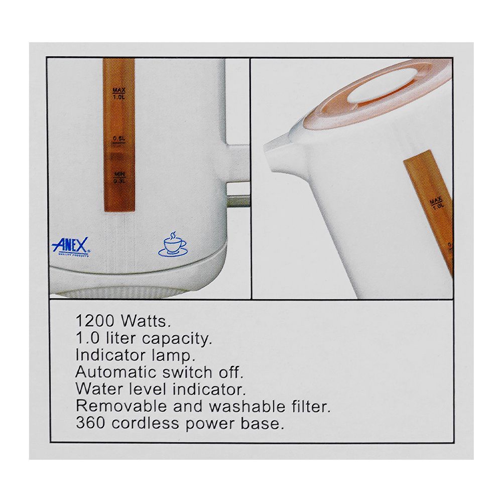 Anex Deluxe Electric Kettle, 1000ml Capacity, 900-1200W, Sea Blue, AG-4032
