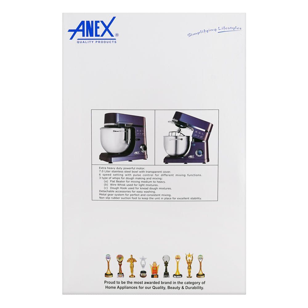 Anex Deluxe Stand Mixer, 1500W, 7 Liter Stainless Steel Bowl, Black, AG-820