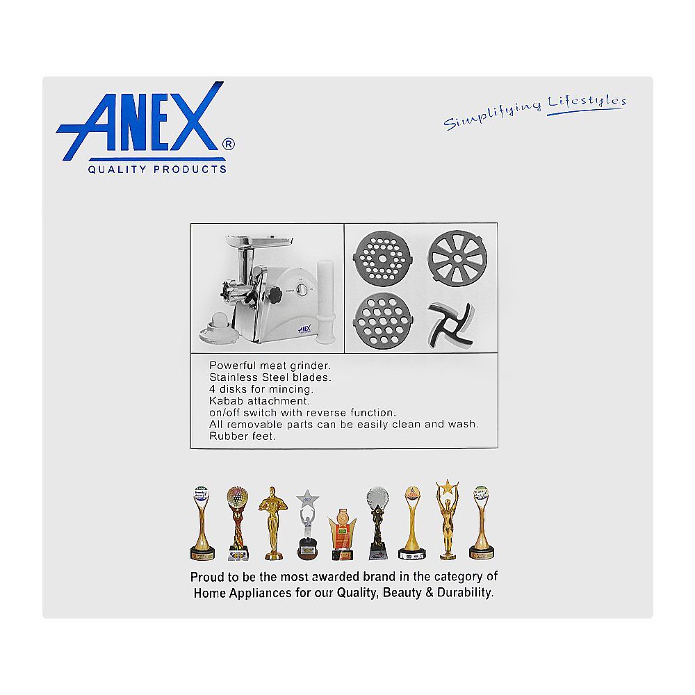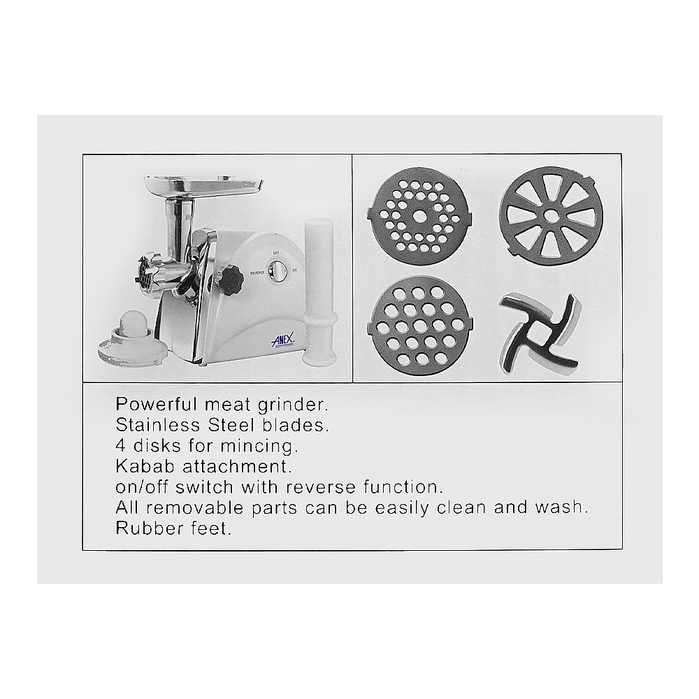 Anex Super Meat Grinder With 4 Disks, 1200W, White, AG-2048
