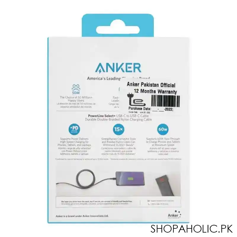 Anker Fast Charging Long Lasting Power Line Select+ USB-C To USB-C Cable, Black, A8033H11, 6ft