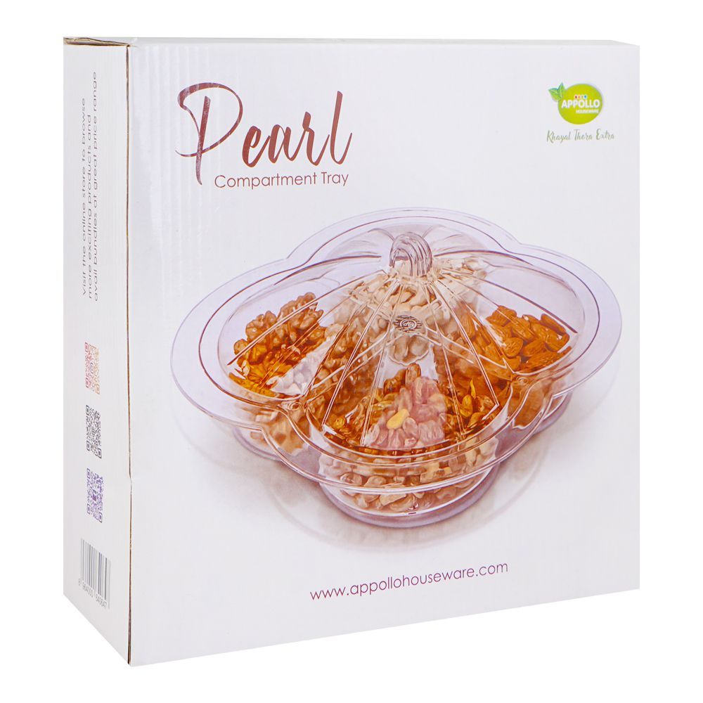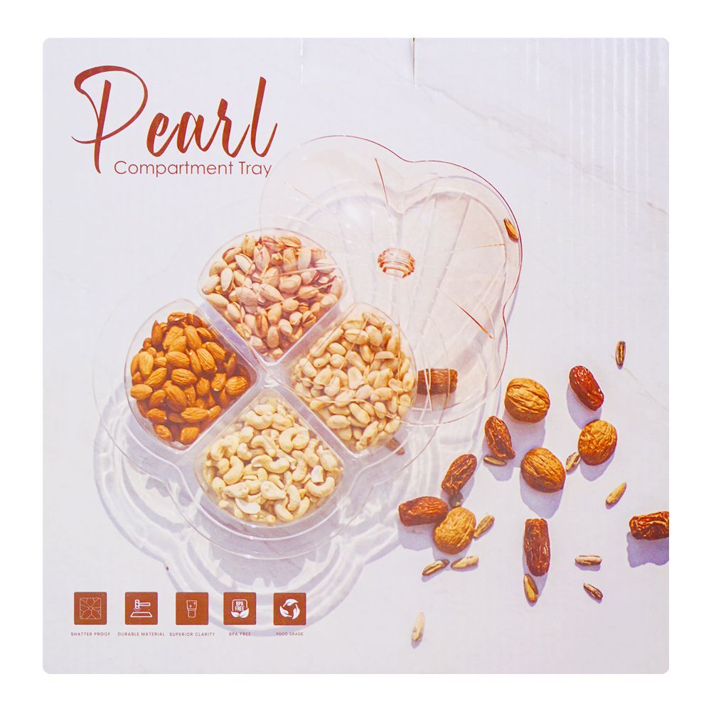 Appollo Pearl 4 Compartments Dry Fruit Tray With Lid, Amber