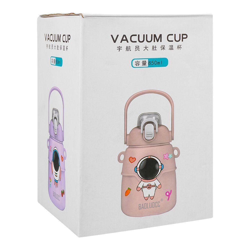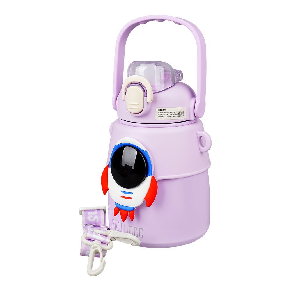 Astronaut Plastic Vacuum Thermos Cup With Strap & Handle, 850ml, Leakproof, Purple, XW8673