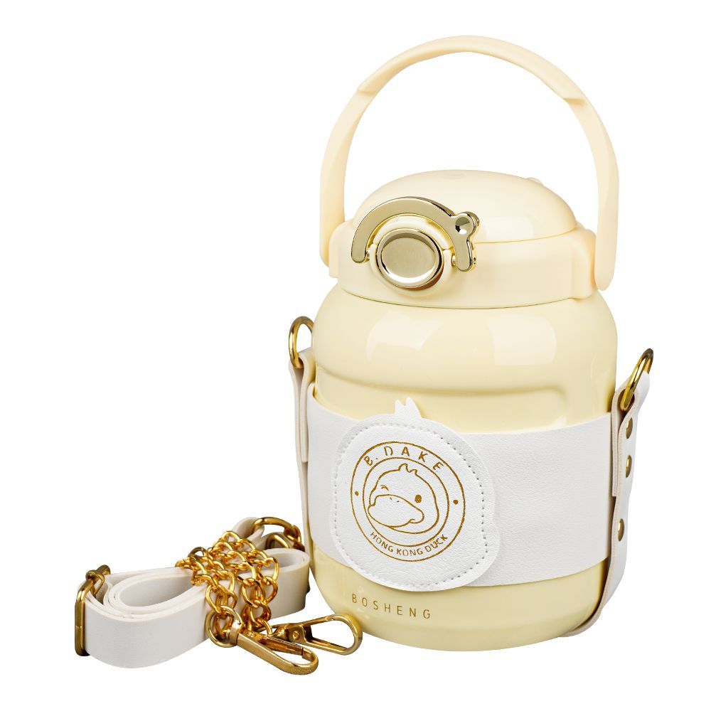 B.Dake Plastic Thermos With Chain Strap, Cream, Creative Water Bottle, BW1810
