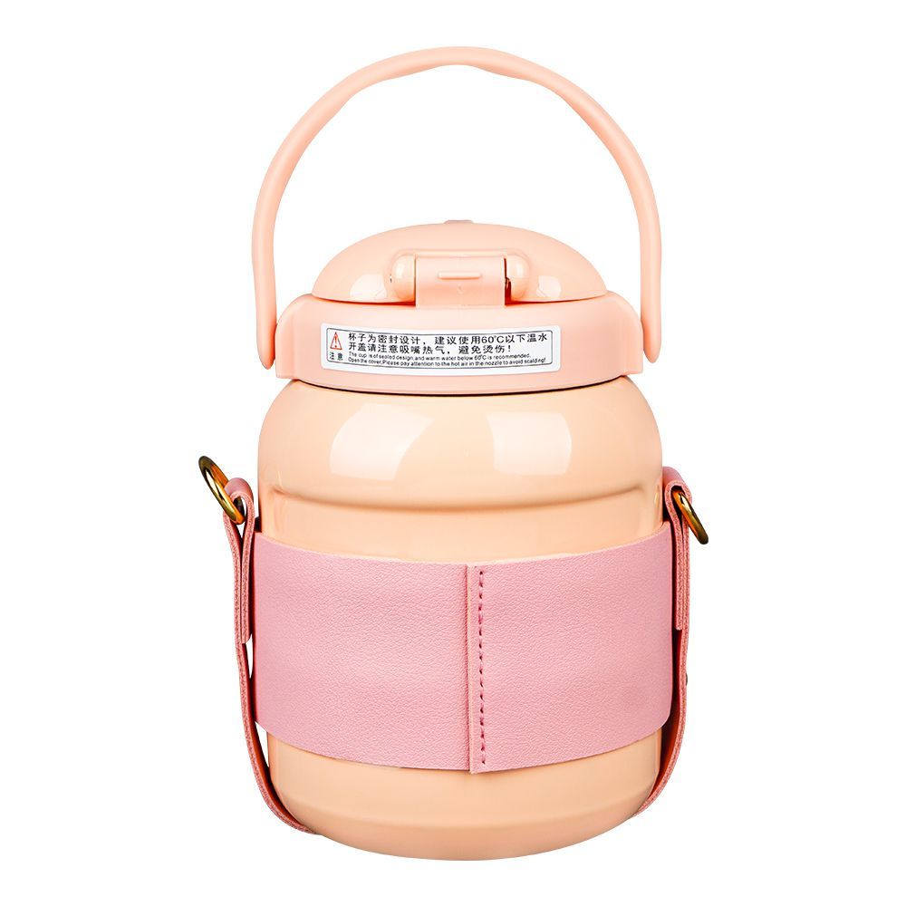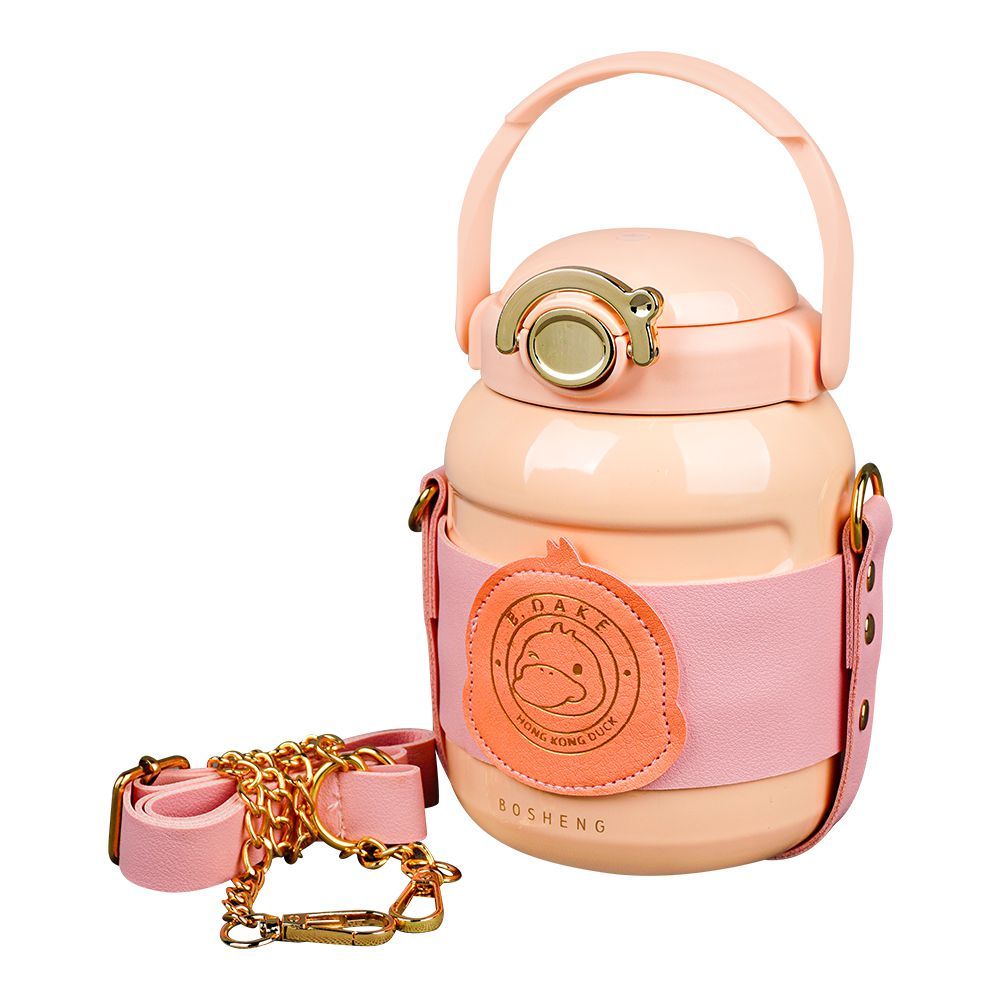 B.Dake Plastic Thermos With Chain Strap, Pink, Creative Water Bottle, BW1810