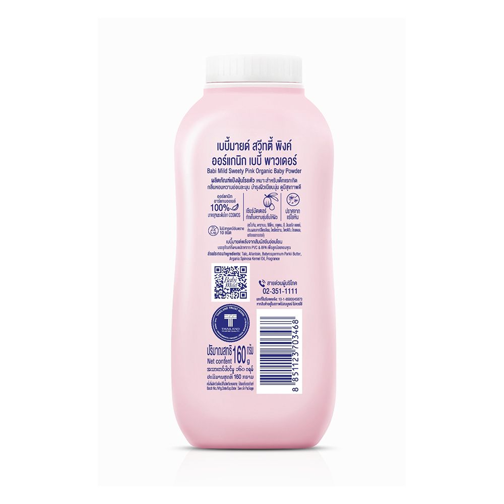Babi Mild Sweety Pink Organic Baby Powder, Gentle For Newborn/0+ Years, Hypoallergenic Tested, 160g
