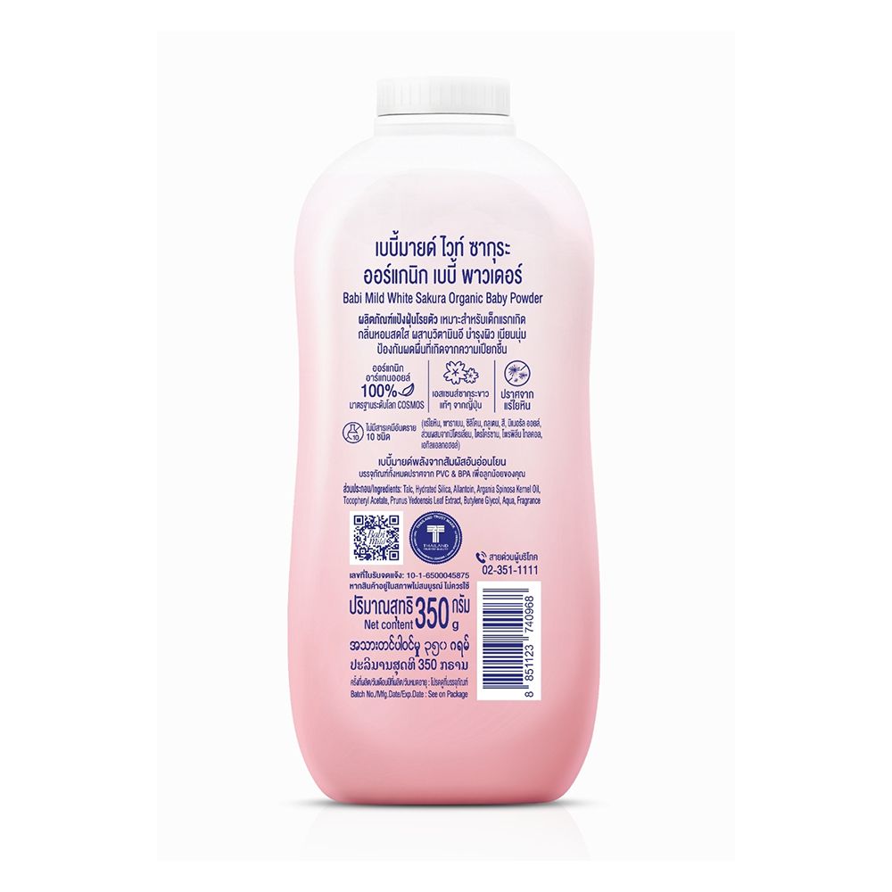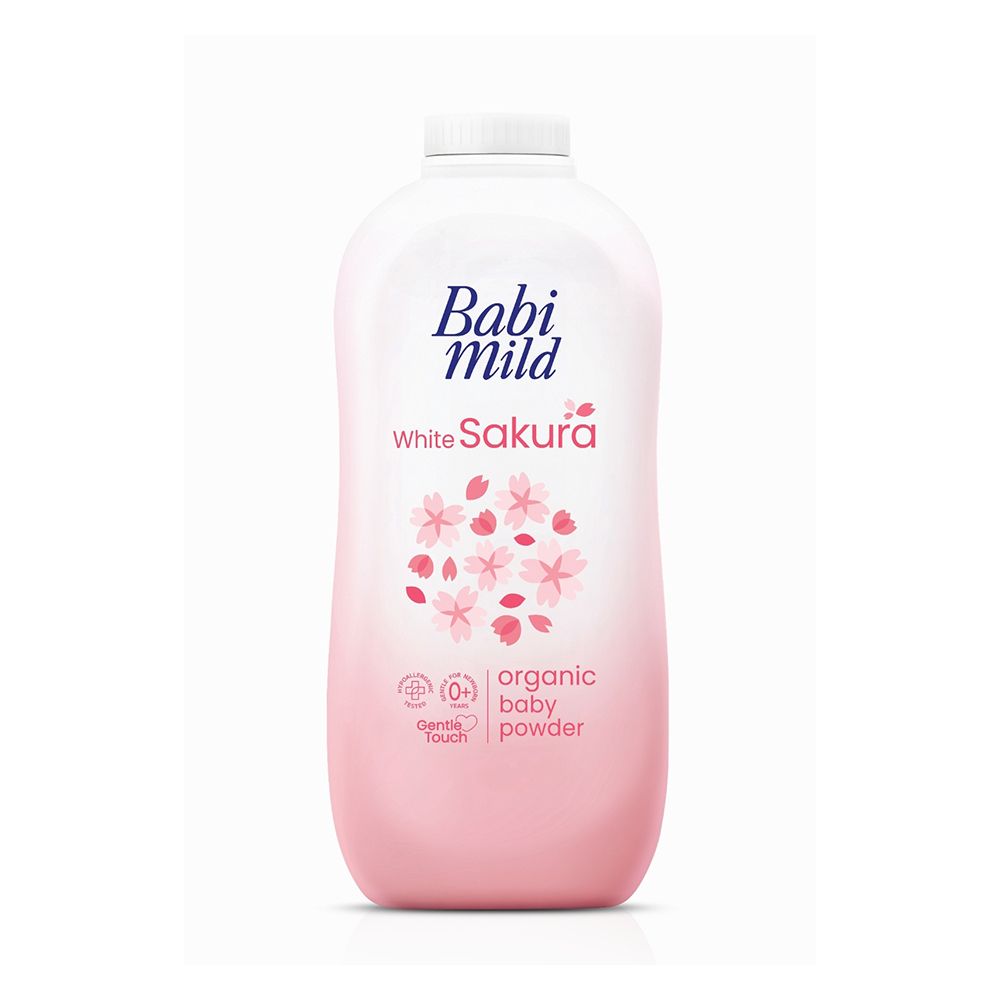 Babi Mild White Sakura Organic Baby Powder, Gentle For Newborn/0+ Years, Hypoallergenic Tested, 350g