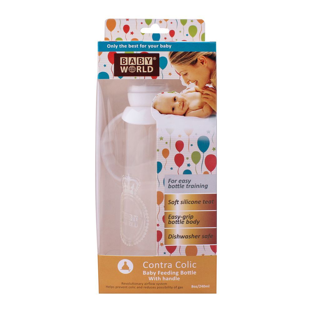 Baby World Contra Colic Baby Feeding Bottle With Handle, BW130550, 240ml