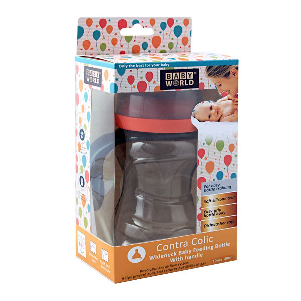 Baby World Contra Colic Wide Neck Baby Feeding Bottle, With Handle, Red, 300ml, BW2047