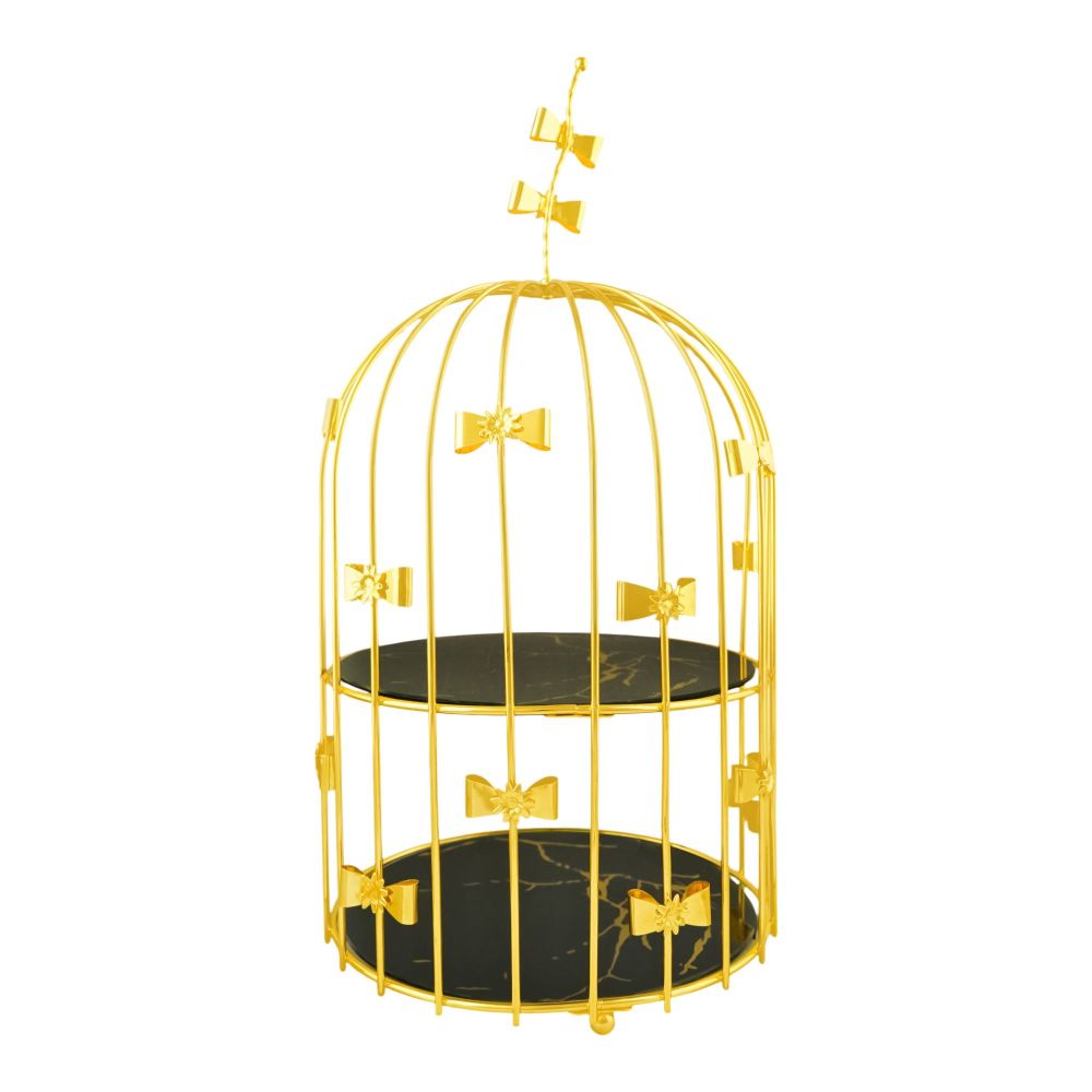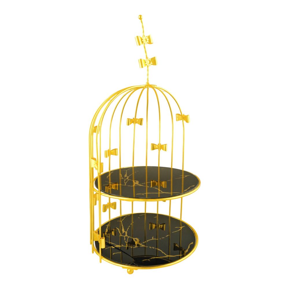 Bhoja 2-Tier Bird Cage Serving Tray, Decorative Dessert Stand for High Tea & Parties, Black & Golden Marble, JWG-018