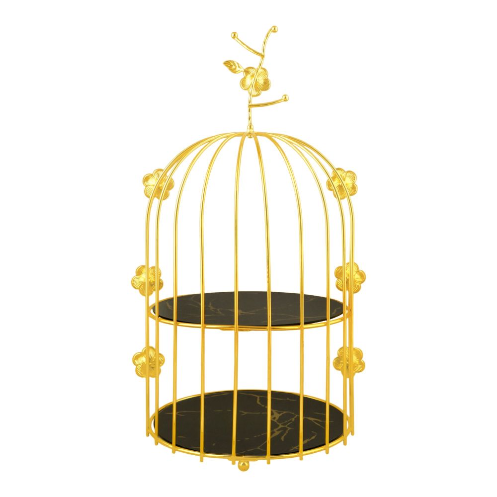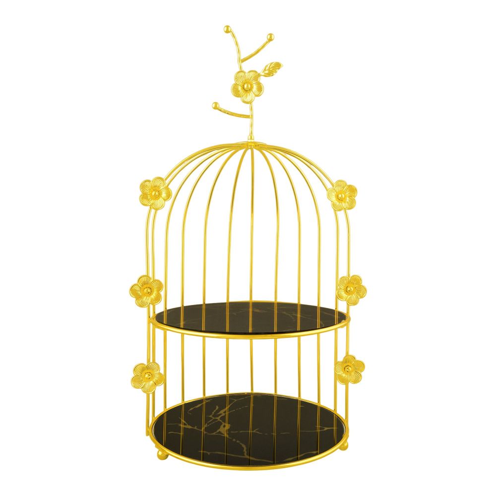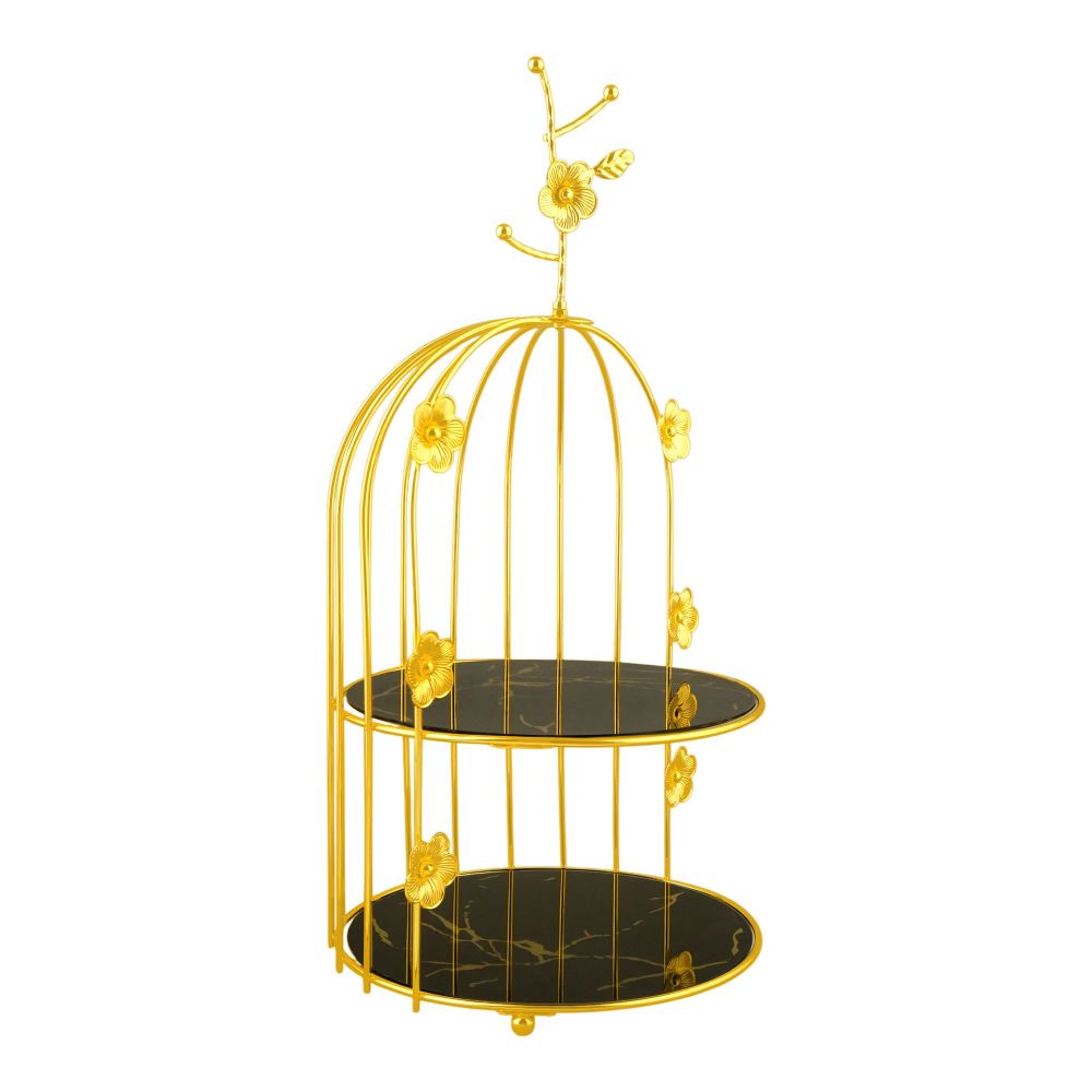 Bhoja 2-Tier Bird Cage Serving Tray, Decorative Dessert Stand for High Tea & Parties, Black & Golden Marble, JWG-019