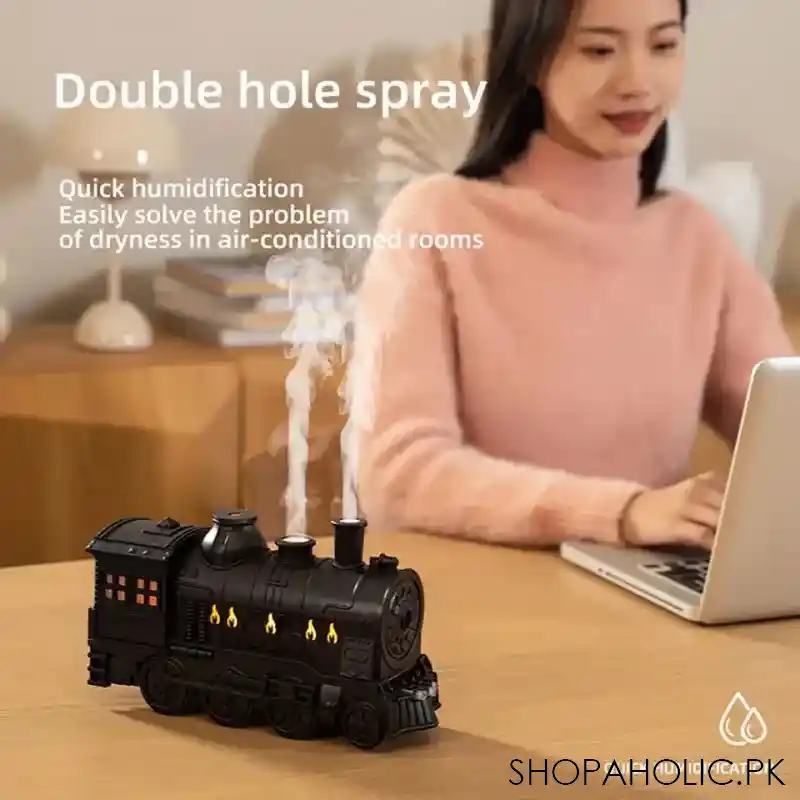 Black Train Diffuser, Train Steam Humidifier, Ultrasonic Cool Mist Air Humidifier, Fragrance Essential Oil Aroma Diffuser, Creative RC Air Freshener with LED Lamp, Circle Dispensing Essential Oil Perfume Machine