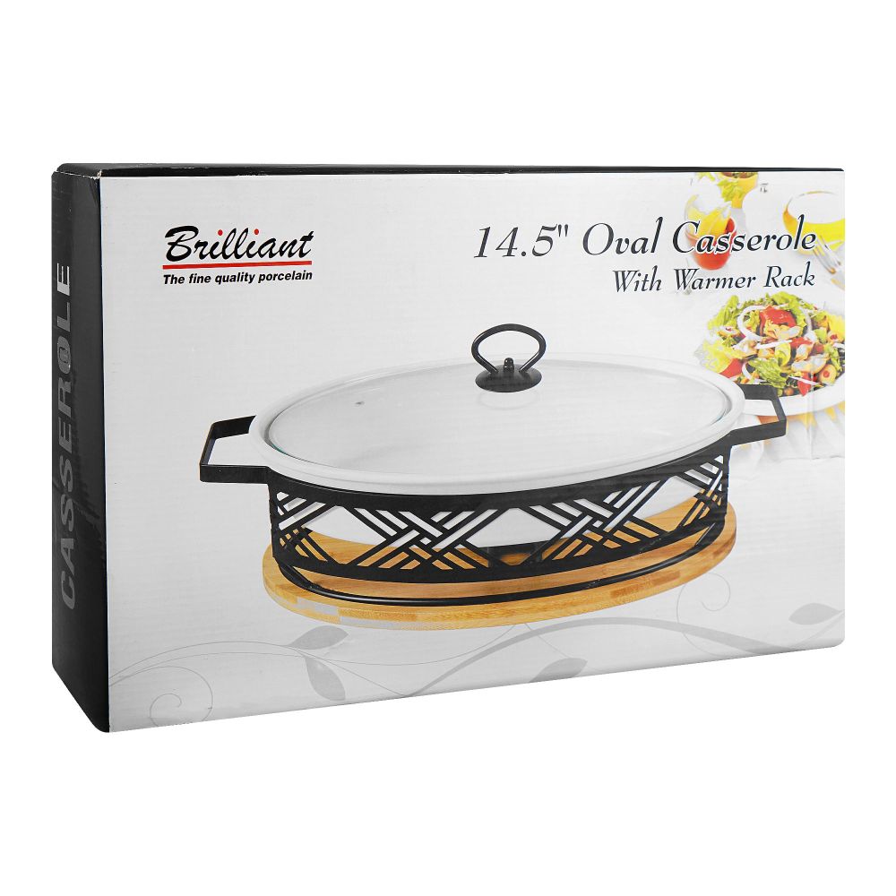 Brilliant 14.5" Oval Casserole Serving Dish With Candle Stand/Rack - Buffet Food Warmer, BR1124