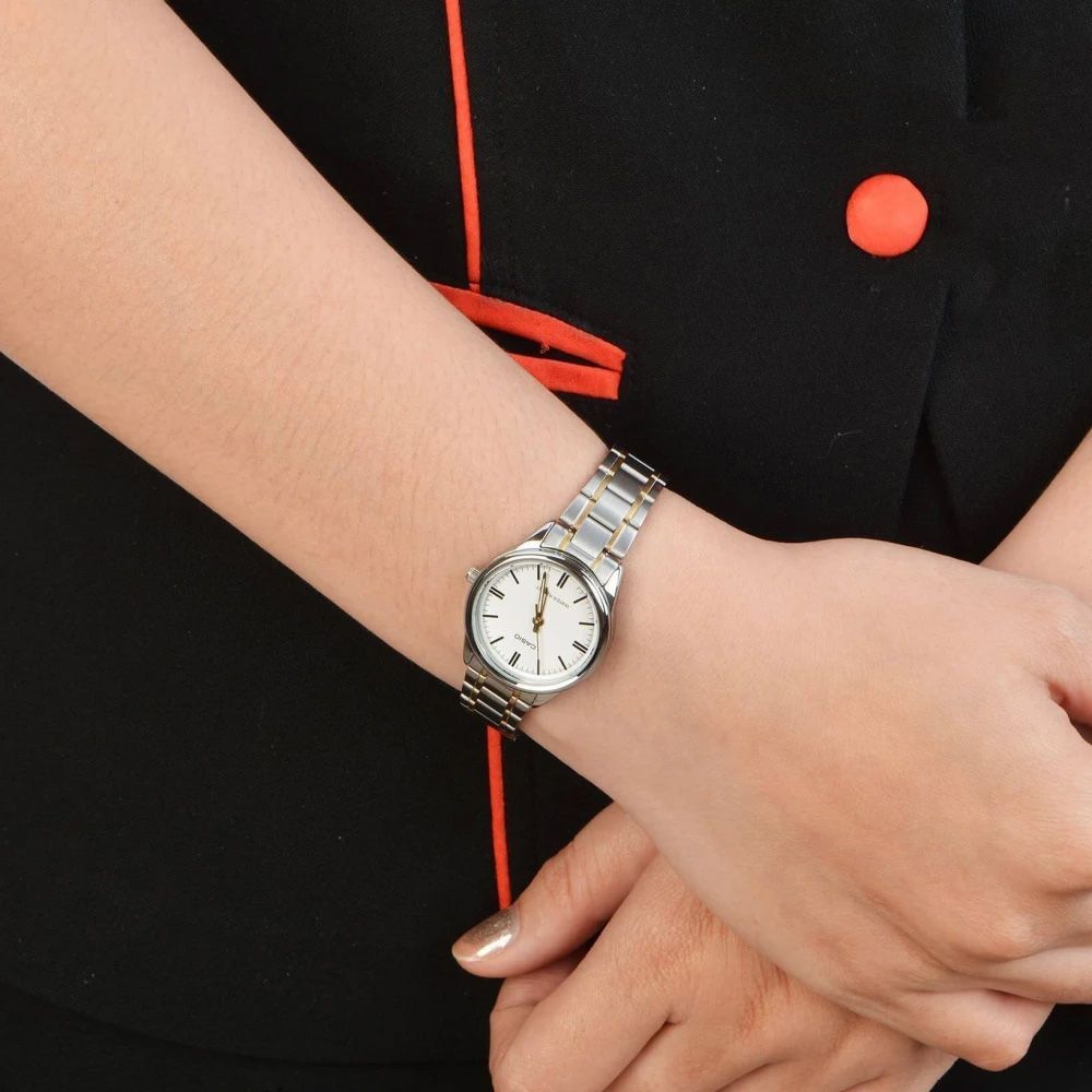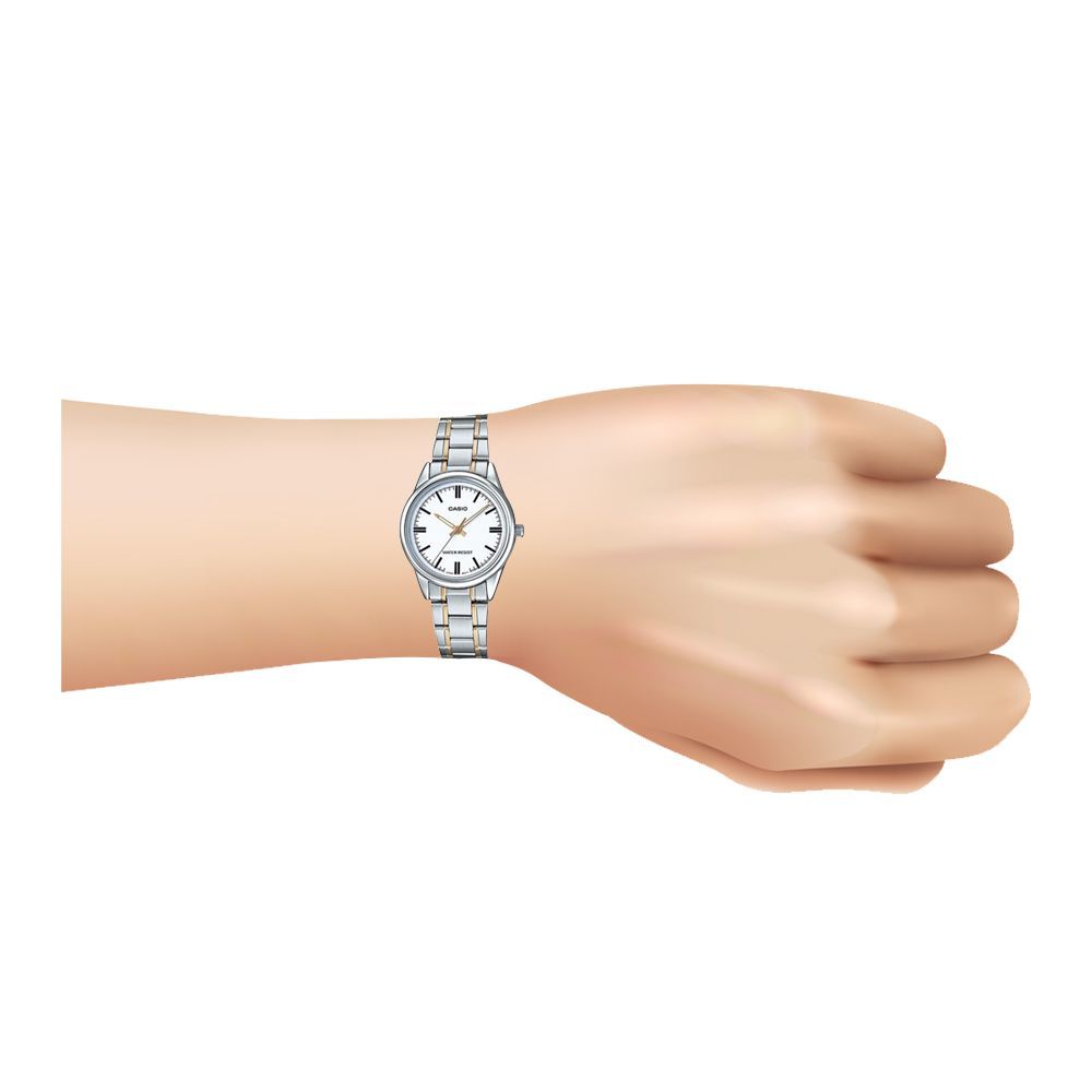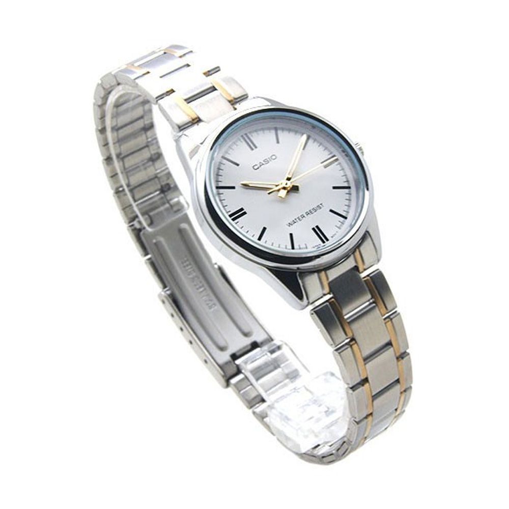 Casio Enticer Women's Two-Tone White Dial Watch, Stainless Steel Strap, LTP-V005SG-7AUDF