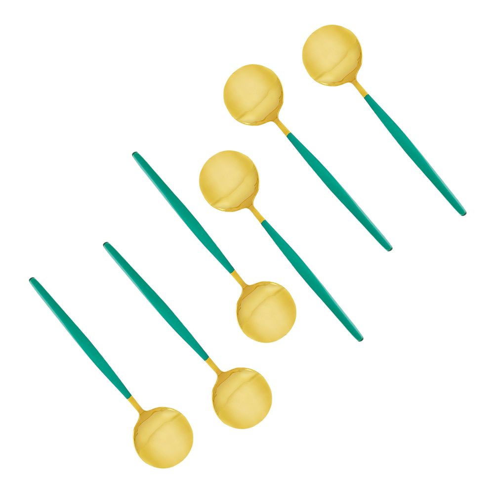Chucan Stainless Steel Soup Spoon Set, Green & Gold, 6-Pack, CC-016
