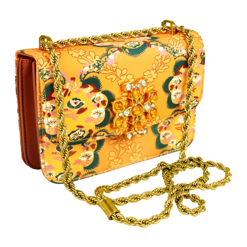Clutch With Golden Chain, Floral Brown, TR908