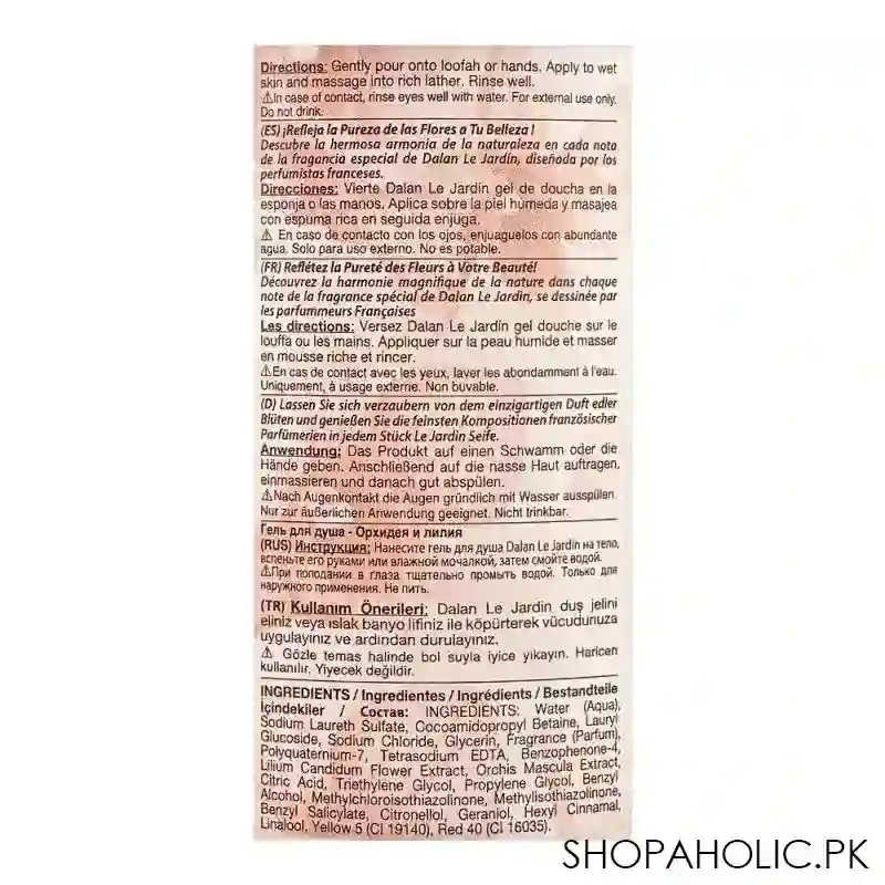 Dalan Le Jardin Orchid & Lily Ultra Rich Perfumed Body Wash, Alcohol-Free, 500ml