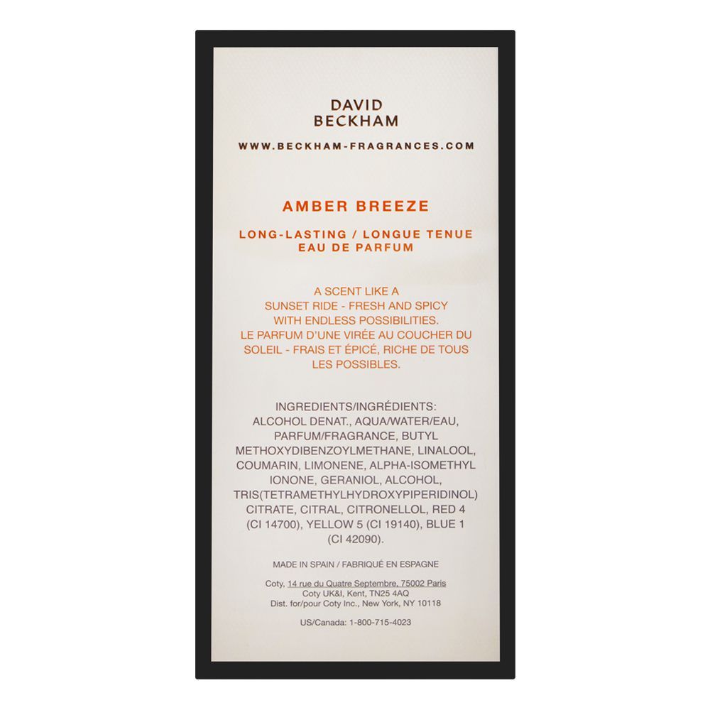 David Beckham Amber Breeze Perfume, Eau de Parfum, For Men, 100ml