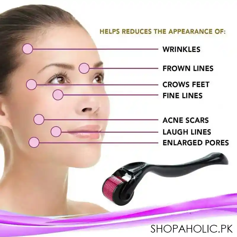 Shopaholic.pk presents the Derma Roller Anti-Ageing and Facial Scrubs & Polishes Scar Removal Hair Regrowth System - an all-in-one solution for youthful, radiant skin and thick, healthy hair. Discover the transformative benefits of this innovative beauty tool today!