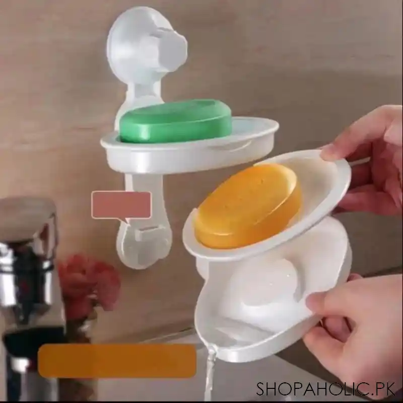 Double Layer Soap Holder With Drain Tray, Suction Cup Soap Dish Holder, Wall-Mounted Sponge Holder