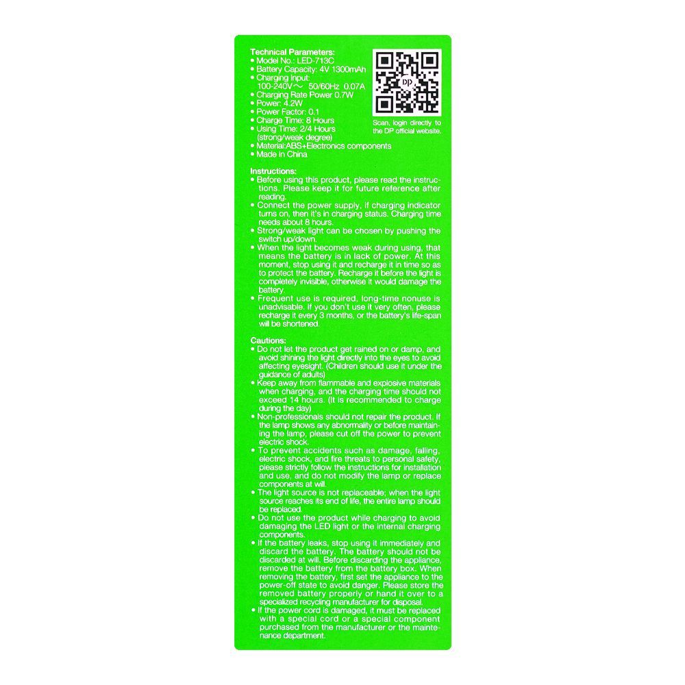 DP LED Portable Rechargeable LED Hand Lamp, 1300mAh, 4.2W, DP-713C