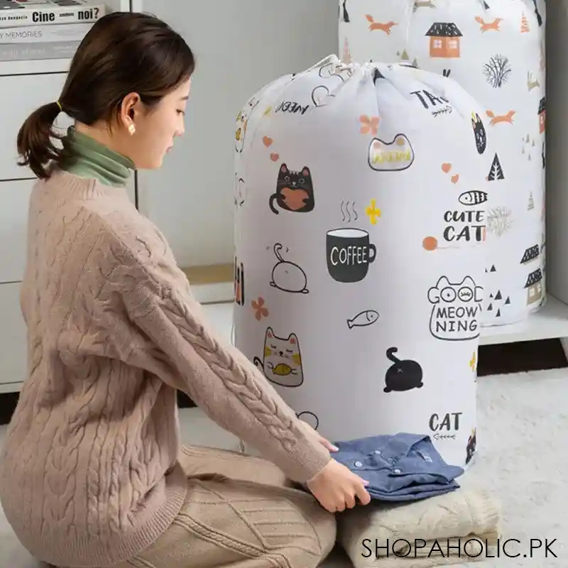Drawstring Buggy Bag, Large Capacity Quilt Sorting Bag, Clothes Luggage Moving Cylinder Bag, Closet Closing Organizer Bag, Foldable Wardrobe Organizer, Dustproof Thickened Clothing Storage Bag, Vertical Blanket Storage Bag, Bedding Storage Pouches