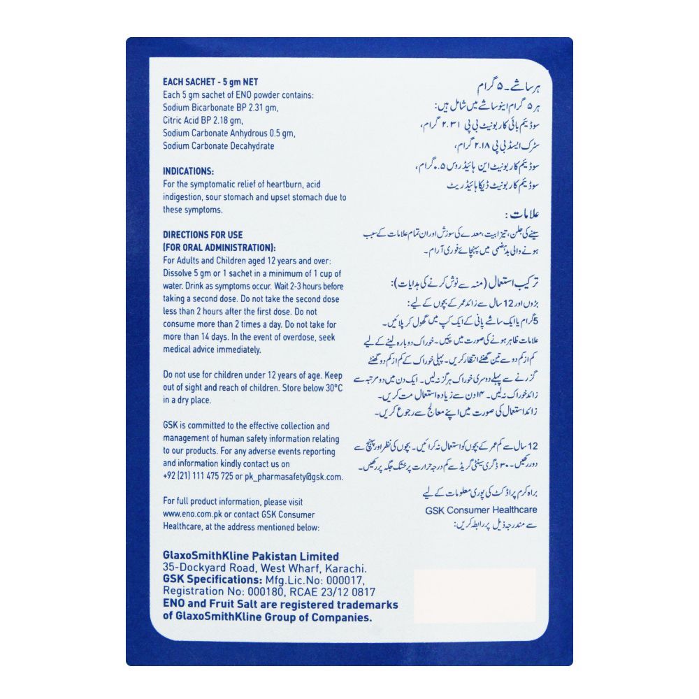 Eno Fruit Salt Regular Sachet, 14x5g