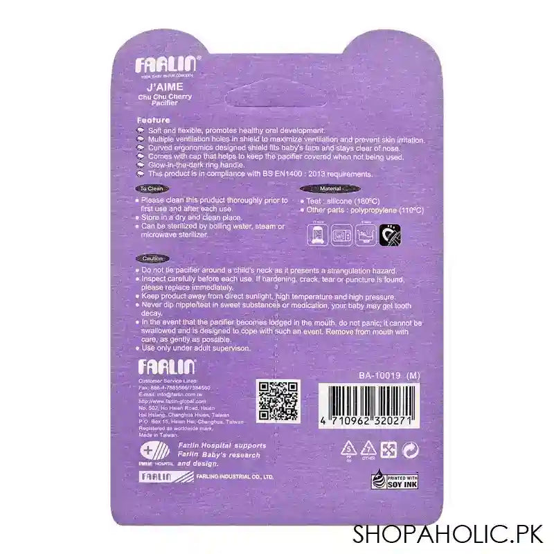 Farlin J' Aime Chu Chu Cherry Natural Pacifier, 0 Month+, BA-10019-M