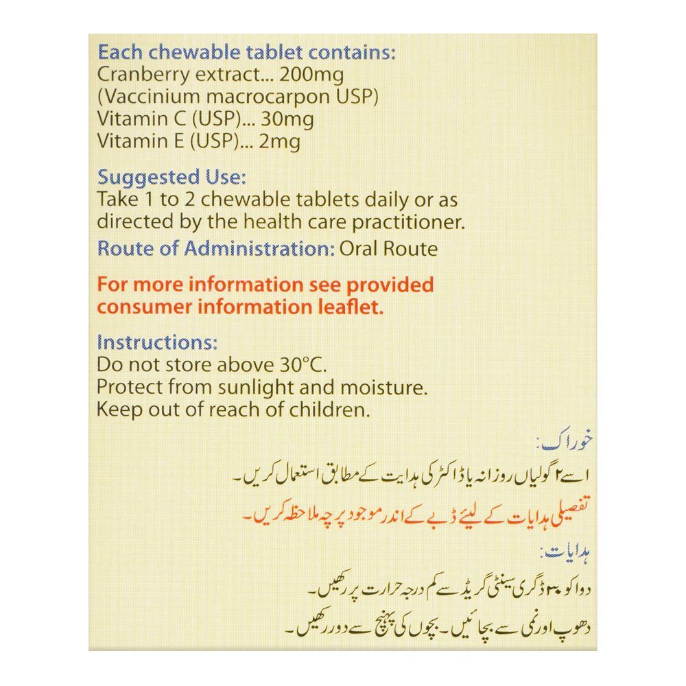 Getz Pharma Cenova Chewable Tablet, Cranberry Extract, 14-Pack