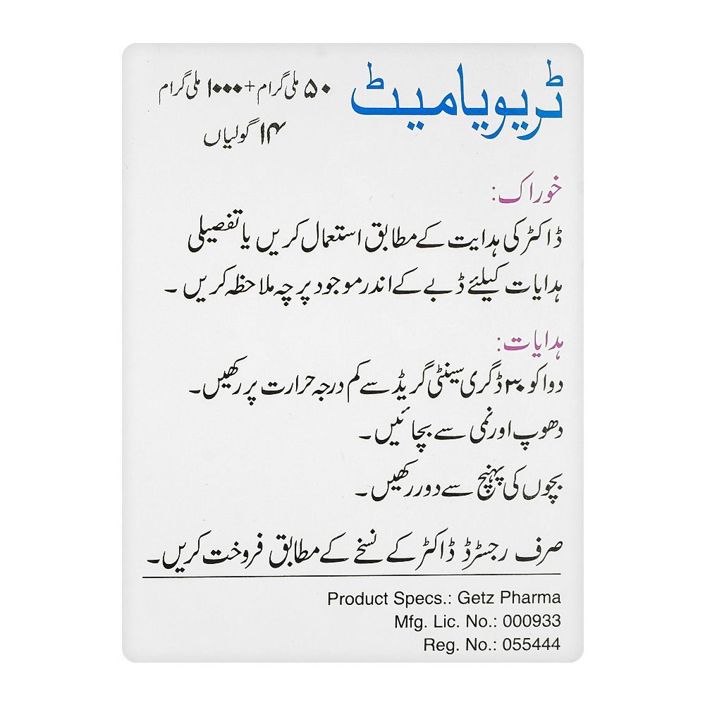 Getz Pharma Treviamet Tablet, 50mg + 1000mg, 14-Pack