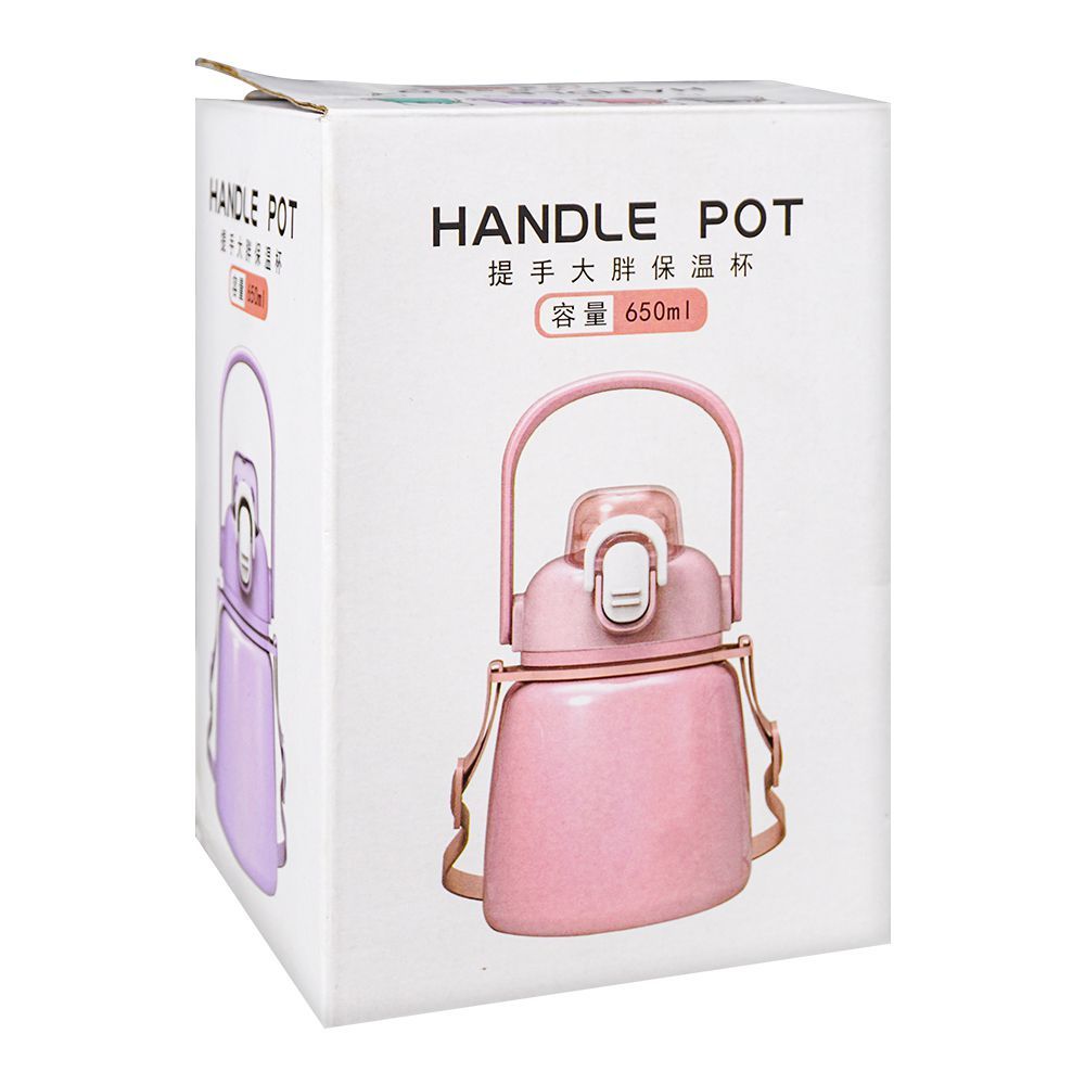 Hande Pot Plastic Thermos With Strap, 650ml Capacity, Pink, Creative Water Bottle, XW8659A
