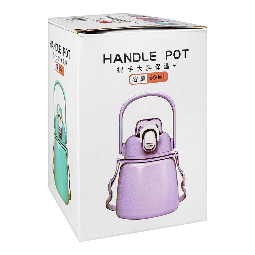 Hande Pot Plastic Thermos With Strap, 650ml Capacity, Purple, Creative Water Bottle, XW8659A