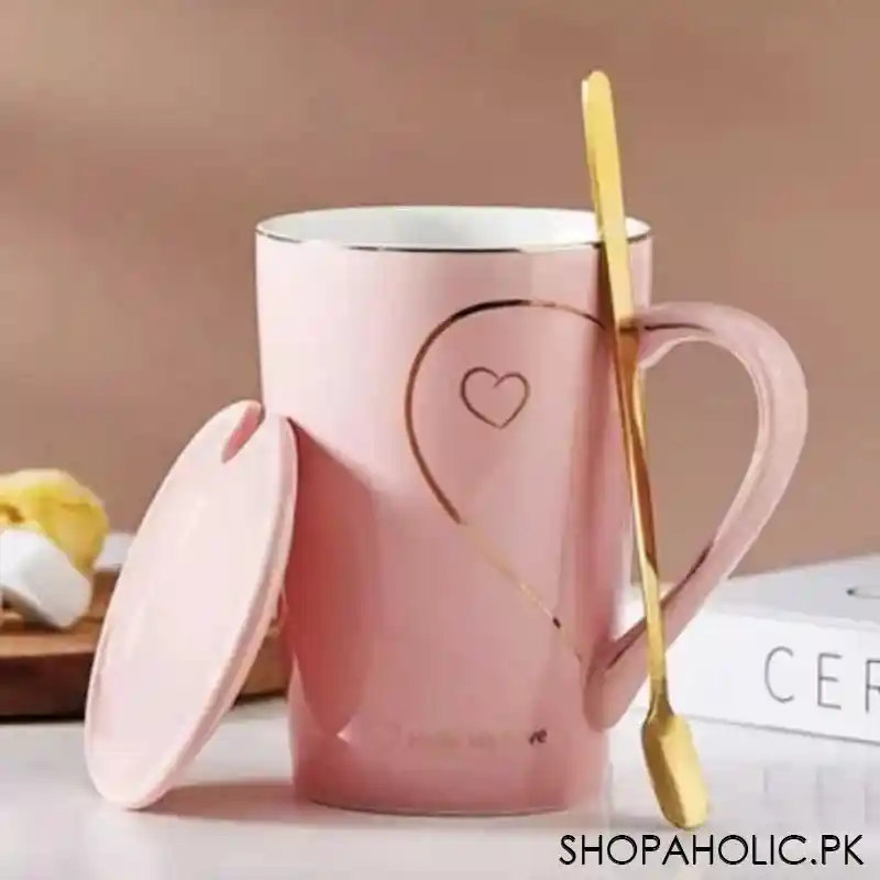 (Set of 2) Heart Pattern Ceramic Love Couple Mug Set with Lid and Spoon