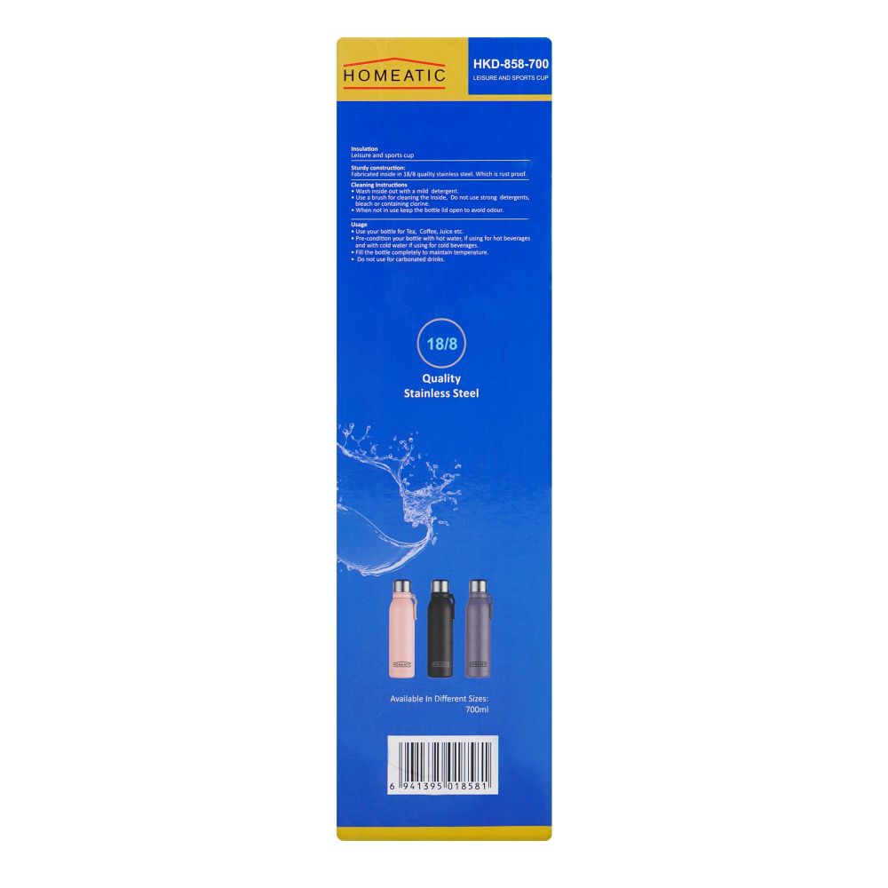 Homeatic Stainless Steel Water Bottle, 700ml, Black, HKD-858