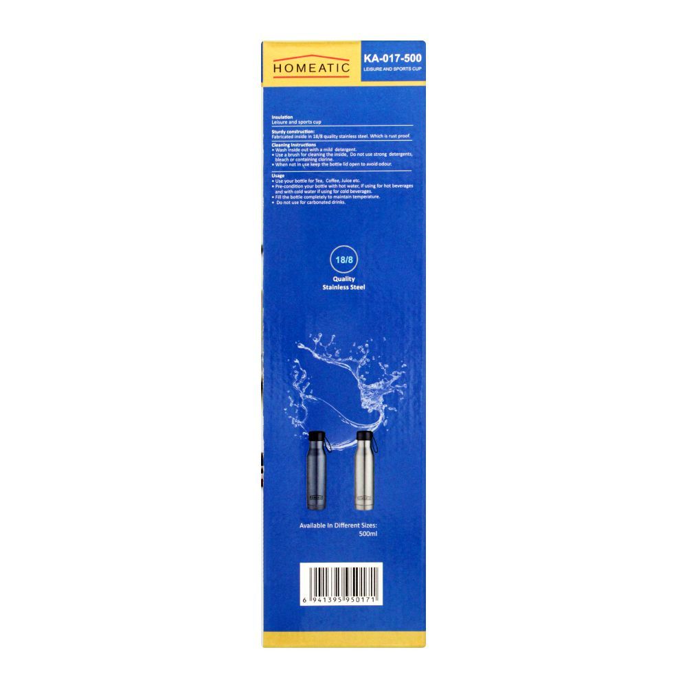 Homeatic Steel Sports Water Bottle, Blue, 500ml, KA-017