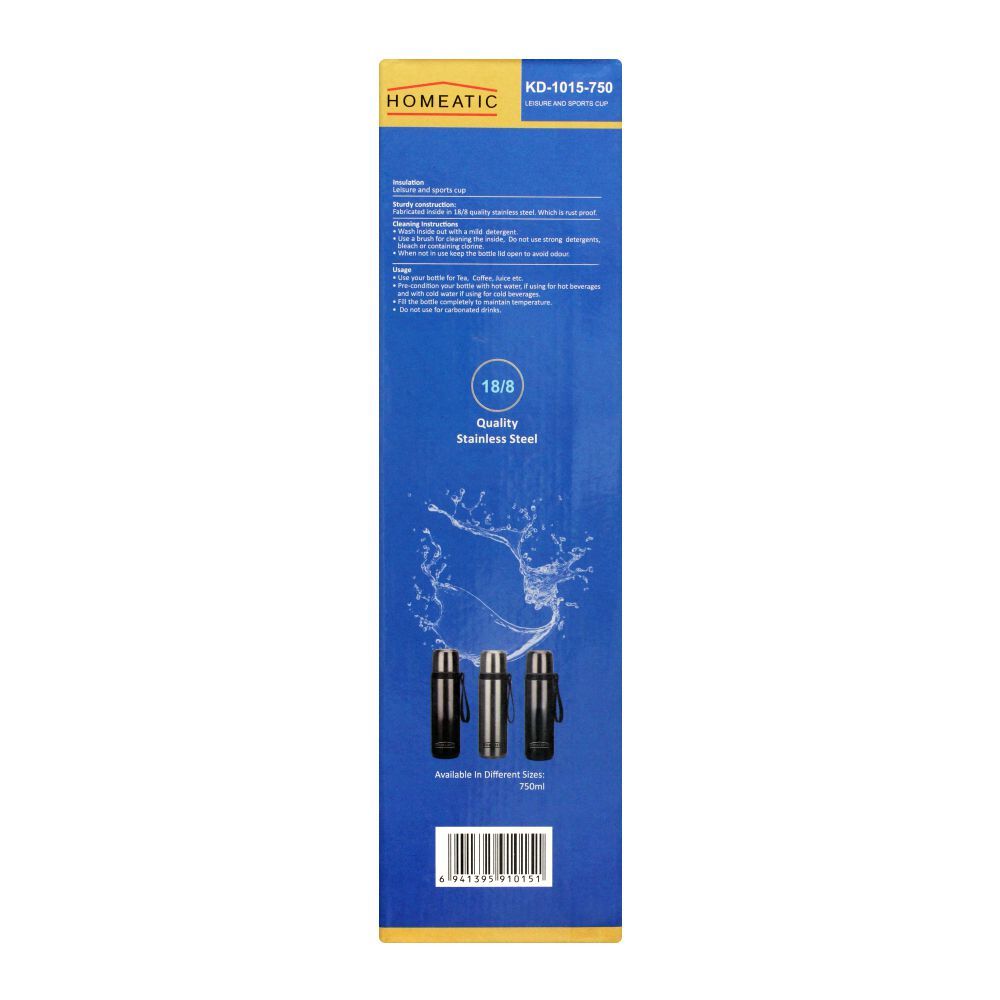 Homeatic Steel Sports Water Bottle, Silver, 750ml, KD-1015