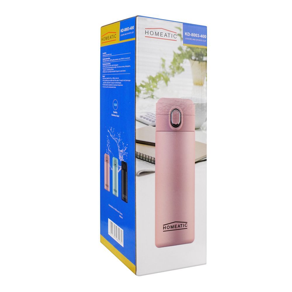 Homeatic Steel Water Bottle, 400ml Capacity, Pink, KD-8003