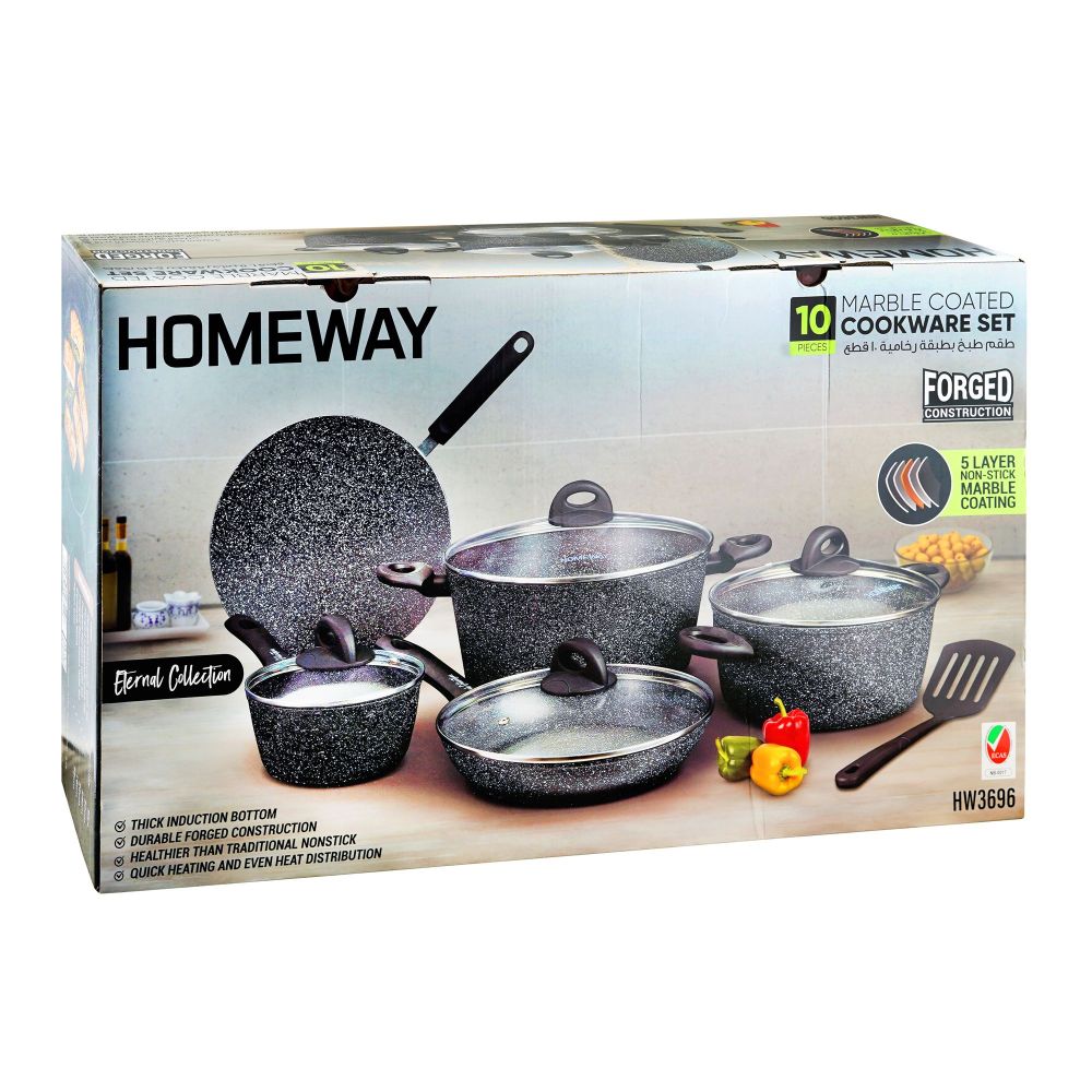 Homeway Marble Coated Non-Stick Cookware Set, 10-Pack, HW3696