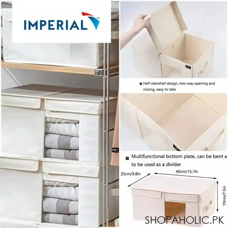 In conclusion, the Imperial fabric storage box twin cap size of 25 x 40 x 19 cm is an excellent option for those who want to keep their homes organized in style. Its durable fabric material, ample storage space, and stylish design make it a great addition to any room. Whether you need to store clothing, books, toys, or other household items, this storage box is a versatile and practical solution that is sure to meet your needs.