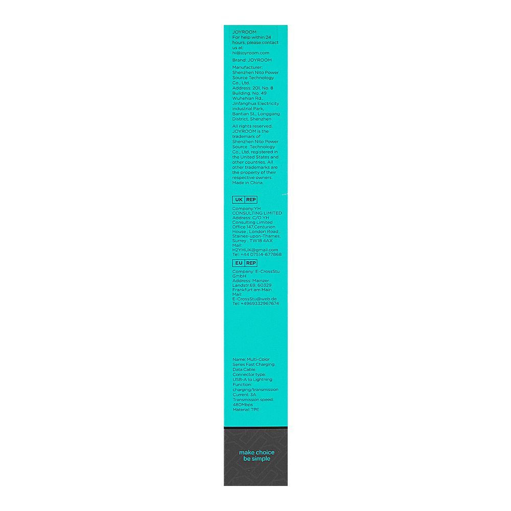 Joyroom Multi Color Series USB-A To Lightning Fast Charging Data Cable (1.2m/4ft, 3A), Black, S-A14